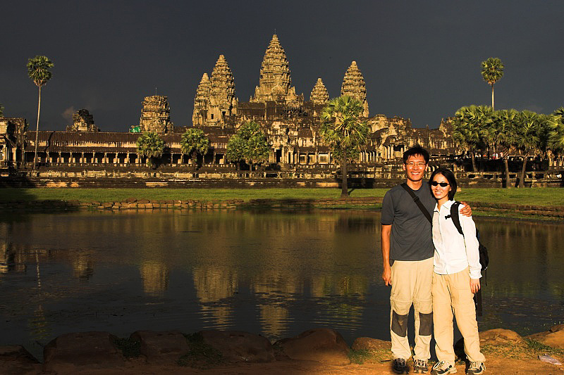 Serene and Eu-Jin in Angkor Wat at sunset.