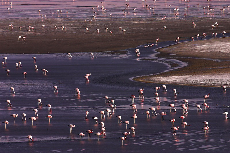 A small portion of the large number of flamingos nesting in Laguna Colorada.