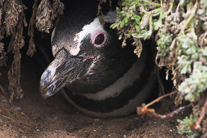 Adult penguin in the burrow. I peeked in and saw a baby penguin as well.
