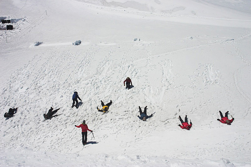 RMI group practising self arrest in Camp Muir.