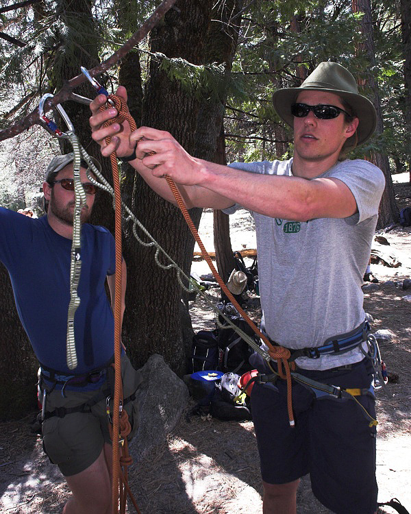 Matt showing how to handle rope and anchors on multi-pitch climbs.