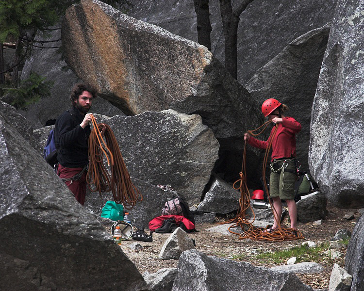 Patrick and Caroline coiling ropes.