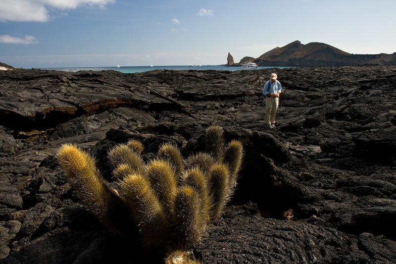 Richard behind a Lava Cactus at Sullivan Bay on Santiago