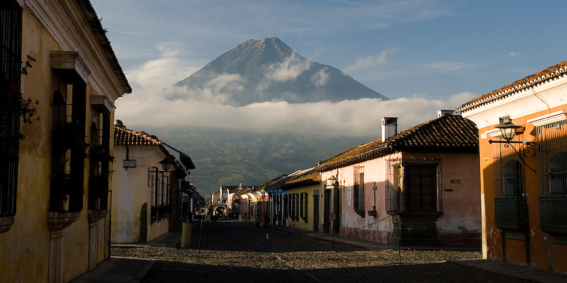 Volcan Agua looming over Antigua just after sunrise.