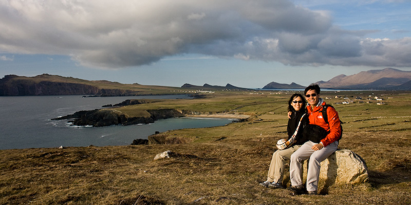 Serene and Eu-Jin at the overlook above Ballyferriter, Dingle Peninsula