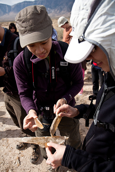 Serena and Serene examining the gypsum crystals at Lake Lucero