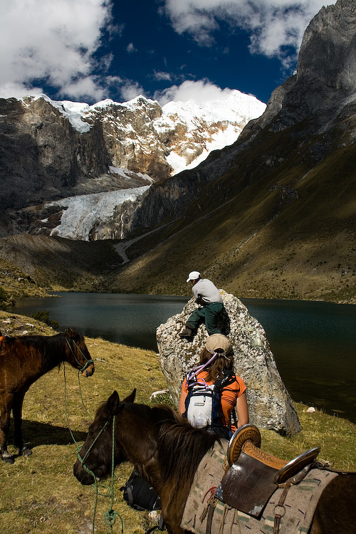 Zac bouldering along the banks of Laguna Siula (4290 m).