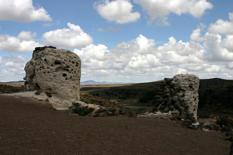 These chullpas had some kind of mortar covering the stone. The mortar didn't survive as well as the stone chullpas.