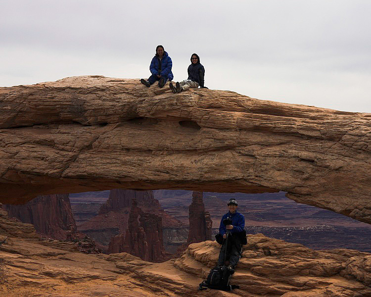Janet, Serene, and Eric at Mesa Arch in Canyonlands National Park.