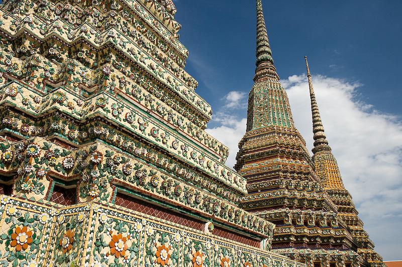 The Rama II, Phra Si Sanphet, and Rama III Chedis in Wat Pho