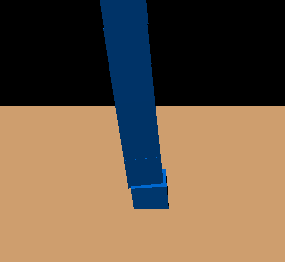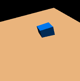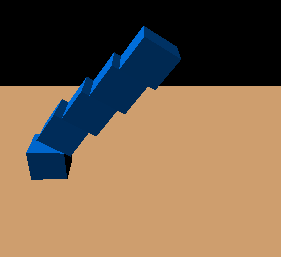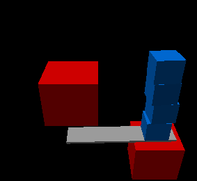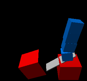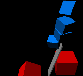 After the launch with shock propagation off - notice the intersection between the plank and the stationary block due to the large forces it experiences (ok, ok, if we really want to be realistic here this plank should probably break, but we're modeling *rigid* body physics here - things don't break!)