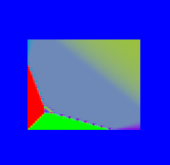 Two things of note. First, unlike the rigid bodies paper, I do not initialize points near the surface and use a quick marching algorithm to intialize the rest, instead I simply initialize all points using the method described above. Thus my method would not scale well to objects with a large number of triangles. Second, because the initialization of any point in the grid is independent of any other point, this initialization can be done on demand in a lazy manner. So not until the value at a particular grid point is needed is it calculated and stored in the grid. This has two advantages, namely that it amortizes the cost of initializing the grid over each collision instead of doing it all at once when the simulation loads, and that grid points that are never needed (e.g. points well inside bodies) are never initialized.