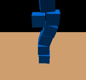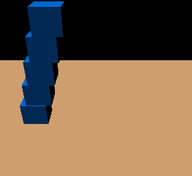 In this scene I stack a bunch of boxes onto a stationary platform so that they form a leaning tower. This scene demonstrates a problem with shock propagation. Note that it looks like the tower should fall over, however, with shock propagation turned on it doesn't fall. If shock propagation is turned off, then the tower falls over like it should. Shock propagation is meant to help efficiently stabilize stacks, but here we see that it does so with some loss of accuracy.