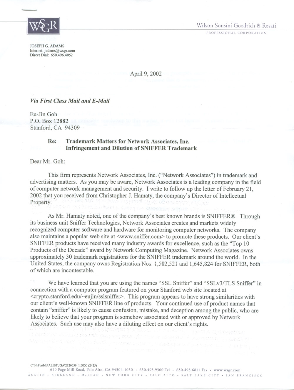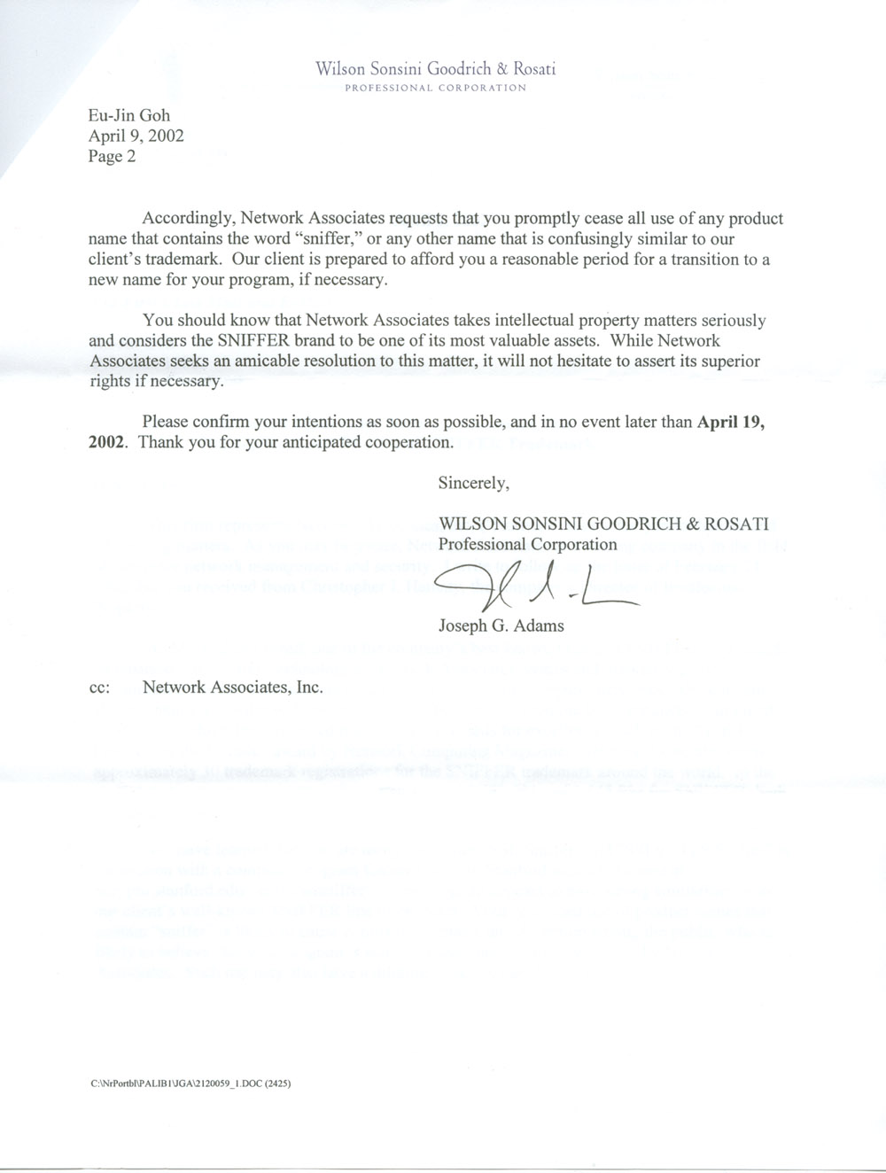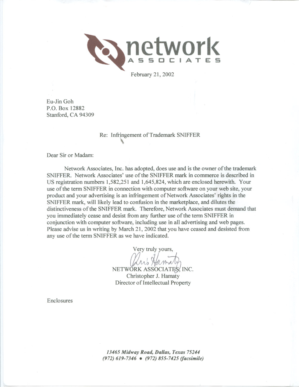 I received two cease and desist letters from Network Associates over