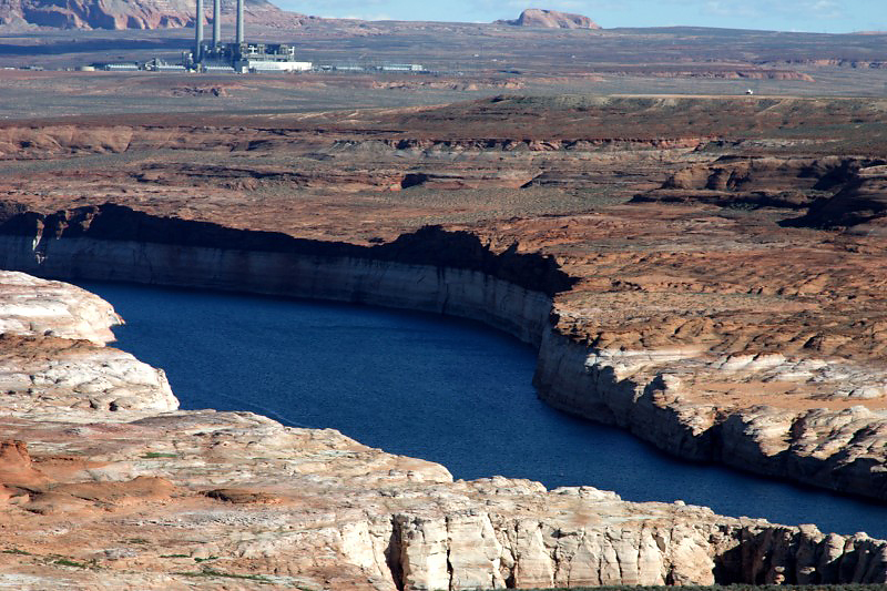 Scenic overlook for Glen Canyon. The powerplant in the background is near the entrance area for the Upper Antelope Canyon site.