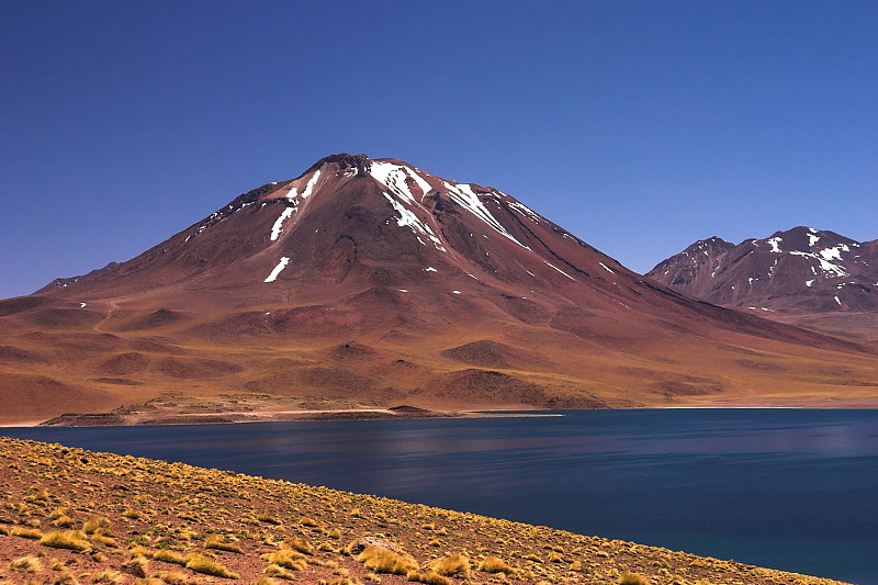Volcan Miscanti (5622 m / 18444 ft) and the deep blue Laguna Miscanti.