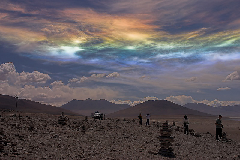 Massive display of rainbow colours over Laguna Verde due to light scattering in the atmosphere.