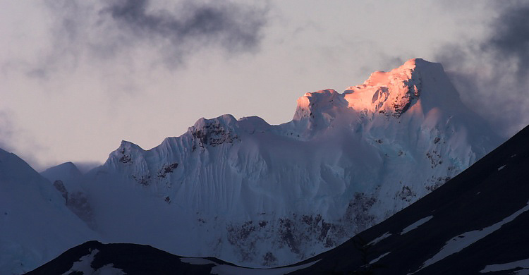 Alpenglow on mountains behind Lago Dickson. This was the only sunset alpenglow I saw on the circuit.