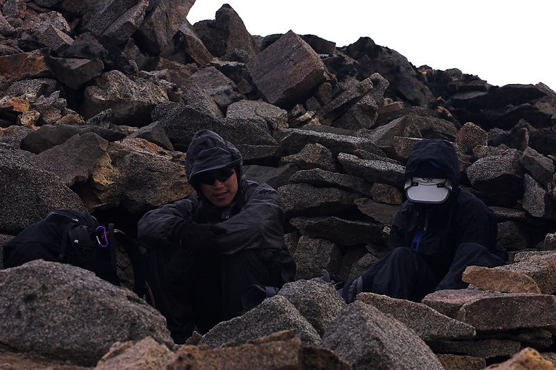 Ray and Serene hiding behind the windbreak at Paso John Garner. The winds were 40 or 50 mph sustained with gusts of about 70 or 80 mph, enough to throw you off balance.