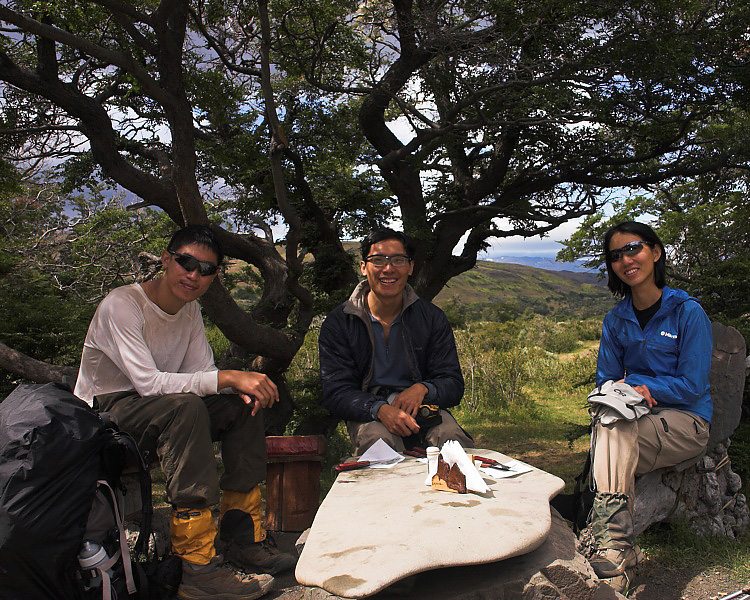 Enjoying a real meal at Refugio las Torres while waiting for the shuttle to the park entrance.