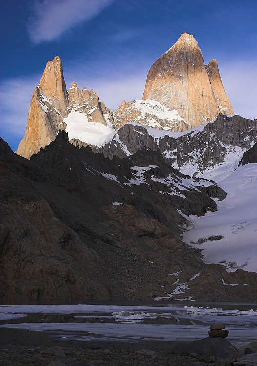 Poincenot (left) and Fitzroy (right) from Laguna de los Tres just after sunrise.