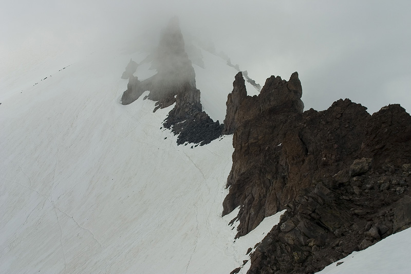 Rock towers in the middle section of Casaval Ridge about 10400 feet.