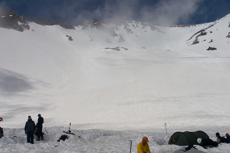 Lake Helen looking up at the Red Banks. The route is on the right of the picture.