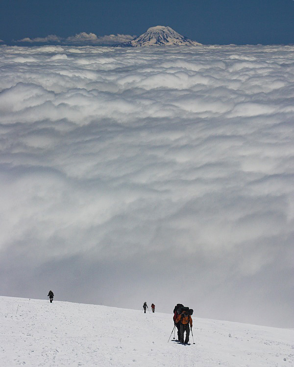 Climbers approaching Camp Muir (10080 ft) with Mount Adams in the background.