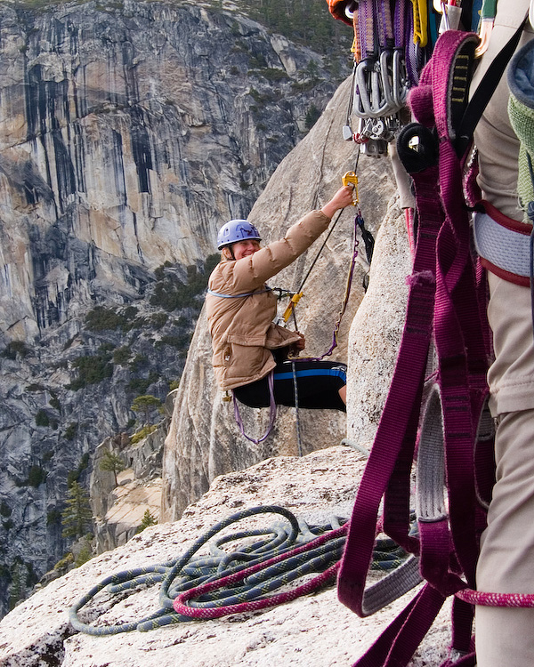 Lena starting to jumar up the second pitch.