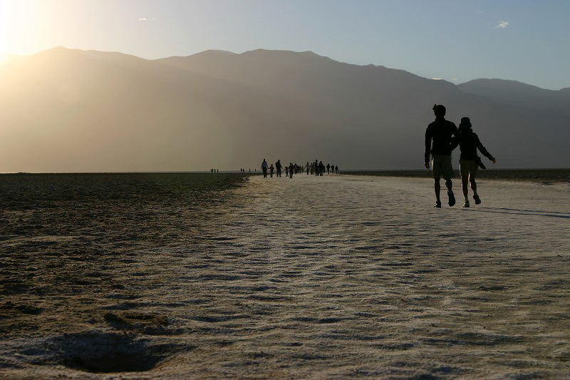 Serene and I walking on the salt flats towards the Badwater lake. Taken by Nancy.