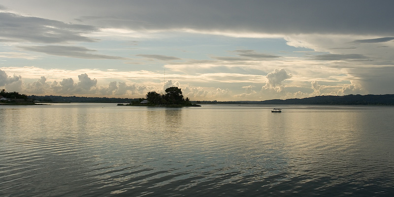 Sunset over Lago de Peten Itza in Flores.