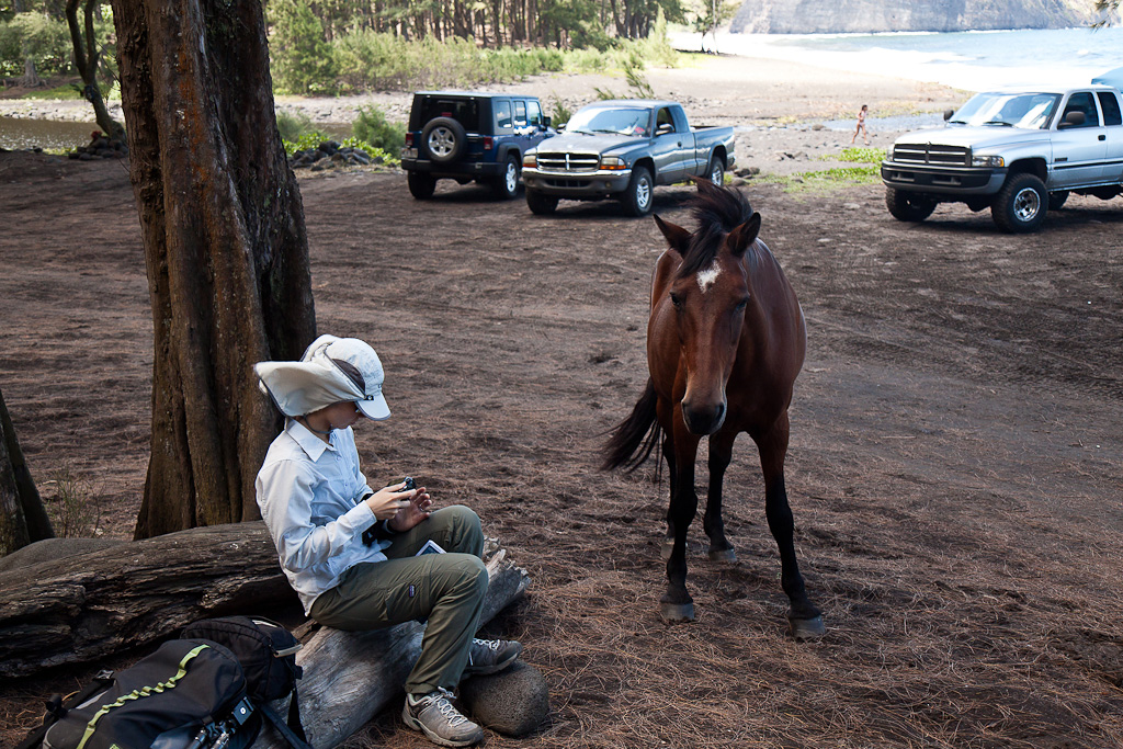 Some parks have resident dogs, Waipi'o valley has a resident horse.