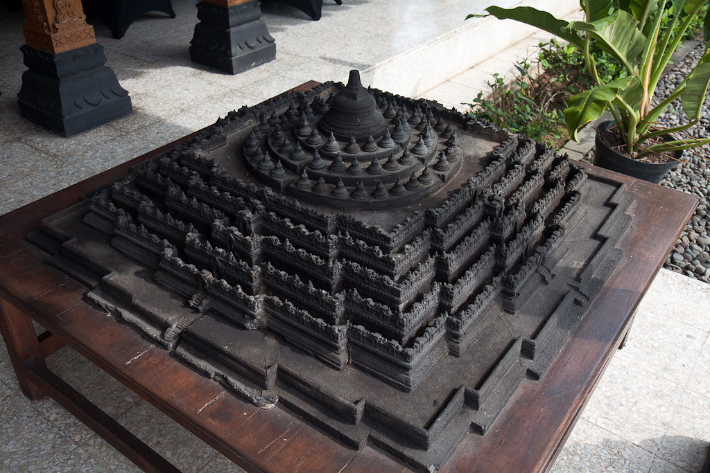 Architectural model of Borobudur showing the 9 platforms and 72 stupas