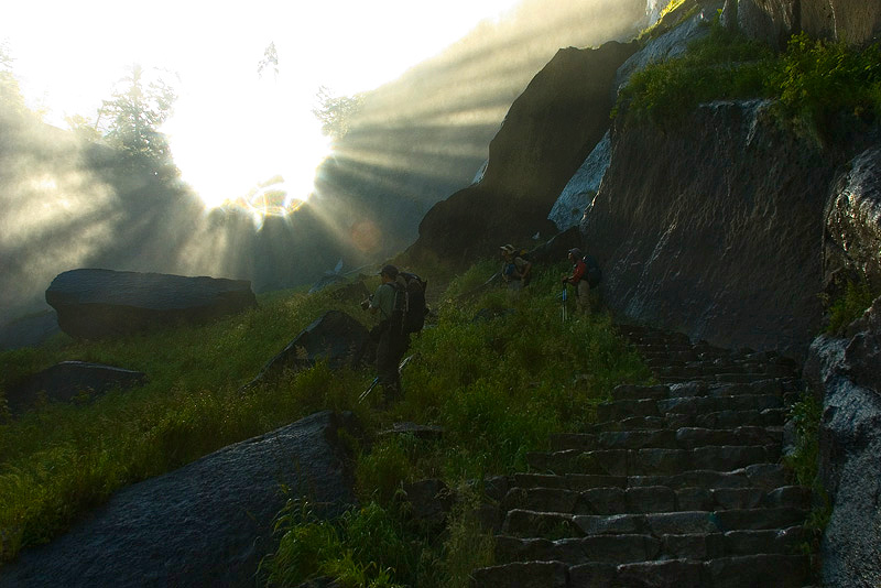 Ray, Ben, and Serene admiring Vernal Falls on the left.