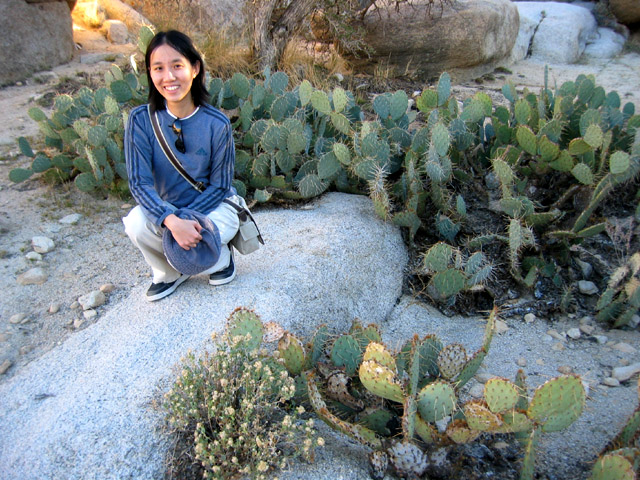 Serene surrounded by spikey cacti.