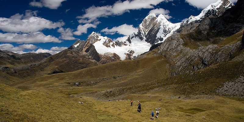 Hiking towards Laguna Mitococha. From left, Jirishanca Chico (5446 m), Jirishanca (6094 m).