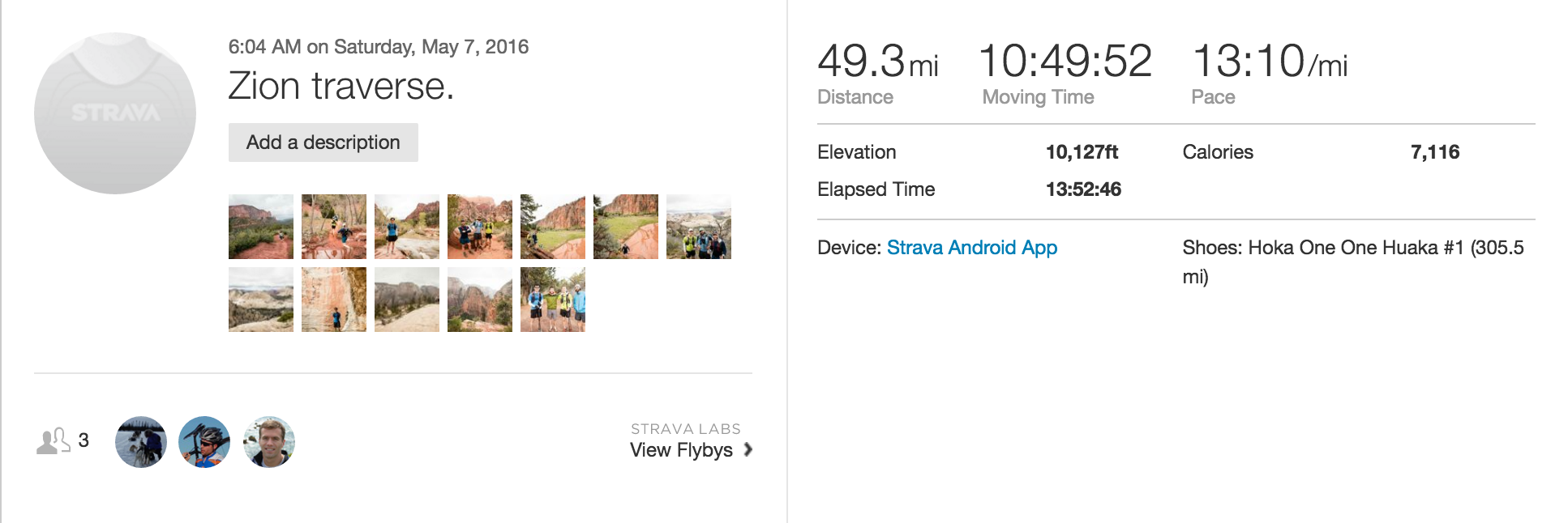 I ran the Zion Traverse (strava) with Ben, Bertram and Joe on May 7 2016.