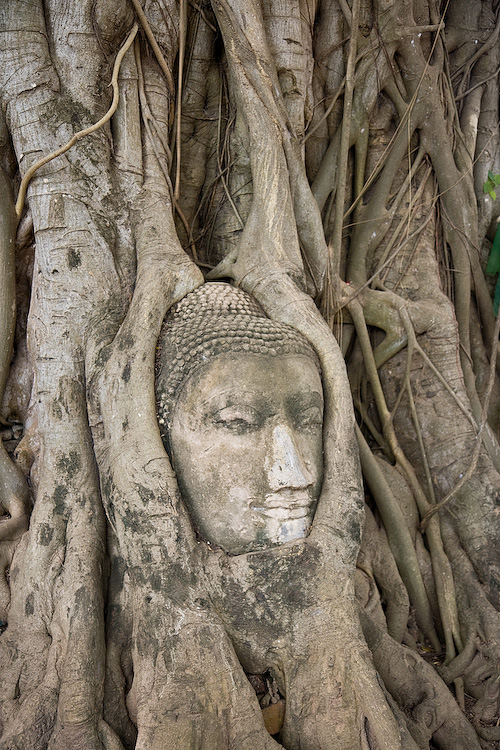 Buddha head in a bodhi tree in Wat Phra Mahathat, Ayutthaya