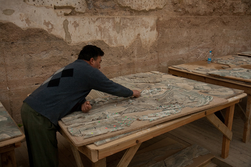 Archaeologist reassembling a marble sheath for the Terrace Houses, Ephesus