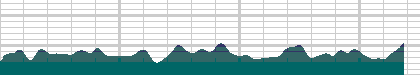 According to my measurements, the road is 3.37 miles long (from the bridge to the stop sign), and gains 1290 feet. Due to its twisting nature and constantly changing grades, the local gradiometer readings should be considered approximate. Even though I measured the grade every 30-50 yards, I still did not capture all the bumps and undulations in the climb. I did a lot of guesswork to try to pick a sample that was representative of each segment.