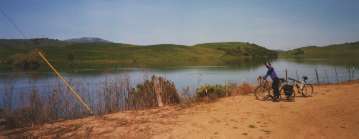 This is me, taking a break alongside the reservoir just outside of Paicines, about 20 miles south of Hollister. Photo by Kinshuk Govil.