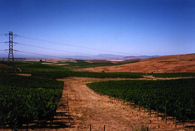 Climbing up the hills that separate Sonoma and Napa Counties, the hills began to become covered with vineyards. Here's a view looking southwest, towards Mt. Tamalpais.