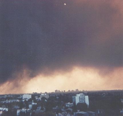 On Sunday, October 20, 1991, a firestorm swept through the Oakland/Berkeley hills area. Fed by hot, dry, gusting winds from the central valley, the flames spread rapidly out of control. The firestorm engulfed 1500 acres, destroyed over 2800 houses, and killed 25 people.