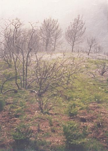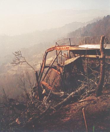A view from Tunnel Road shows a whole hillside charred barren by the