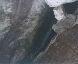 A stream flows through the length of the Bear Gulch Caves. Here it cascades down the wall of a cavern. It was actually quite dark in there, except for the flash of the camera... :-)