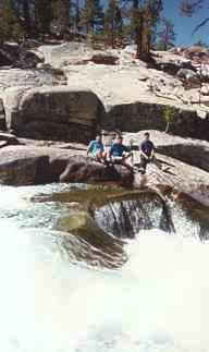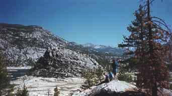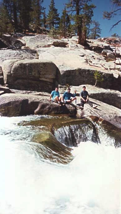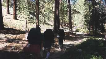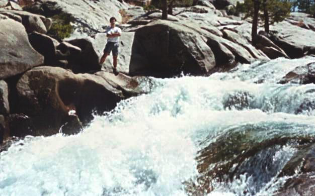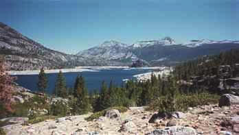 In early September 1996, my friends Kinshuk, Peter, Houman, and I decided to go on an overnight hiking trip in Sierra National Forest. We drove to the starting point, the lower end of Florence Lake (elevation 7300'). From there, we hiked about 5 miles over the lakeside ridges to the other end of the lake. We spent the night there, and then hiked back in the morning.