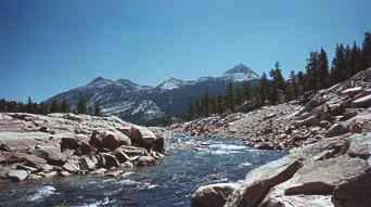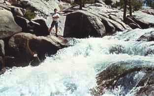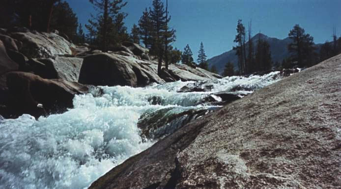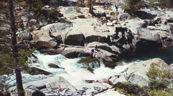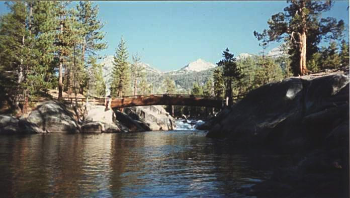 at the far end of the lake, we reached the south fork of the San Joaquin River. This footbridge provides access to the other side of the river.