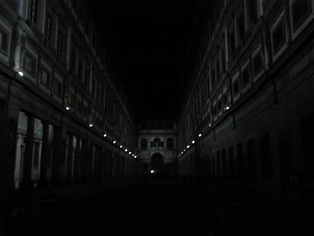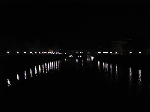 Lights reflect off the Arno River from the Ponte Alle Grazie