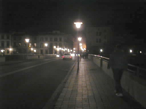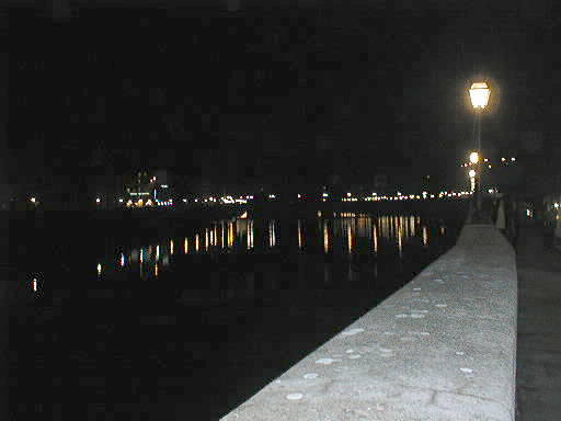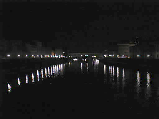 Lights reflect off the Arno River from the Ponte Alle Grazie (Thanks-giving bridge).