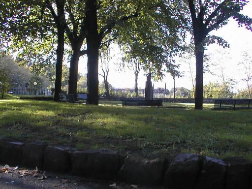 Some benches, and the piazza in the background.